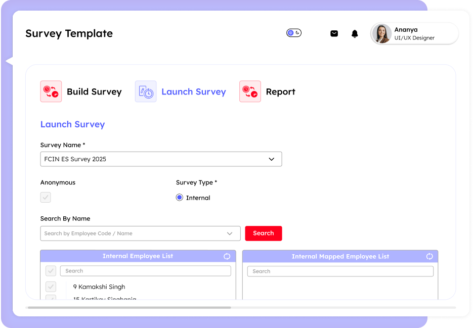 - Decide who gets to see what - you can make surveys for specific teams or specific employees.